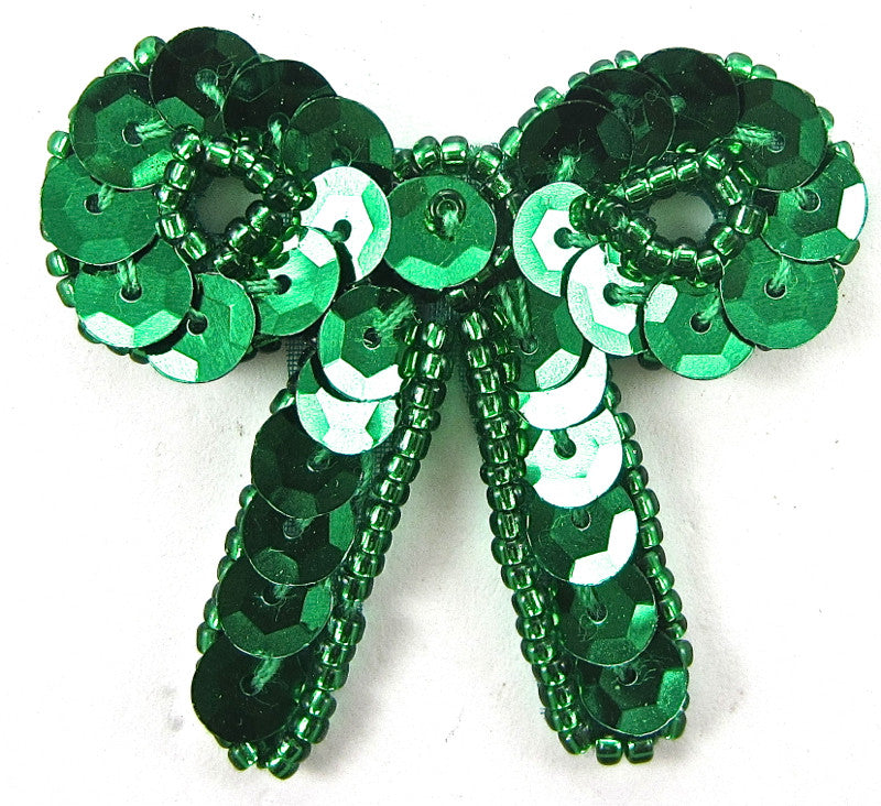 Bow with Green Sequins and Beads 1.5" x 1.7/8"