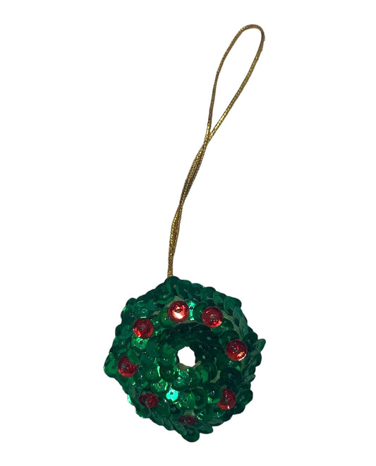 Angel with Iridescent Sequins, Silver, Gold, Red and Green Beads 4" X 2.75"