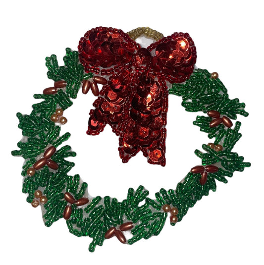 Beaded Christmas Tree with Gold, Green, Red and Silver Beads 8" x 5"