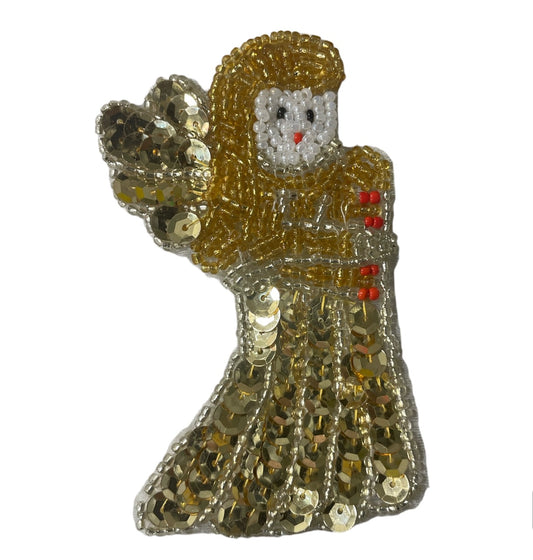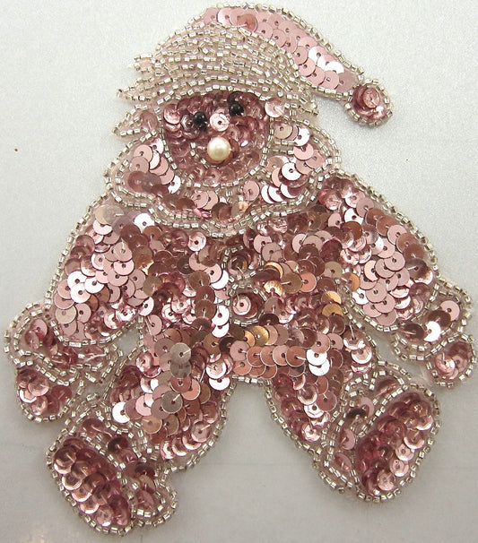 Teddy Bear Clown with Santa Hat Gold Sequins and Beads 5" X 4.5"