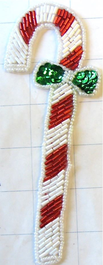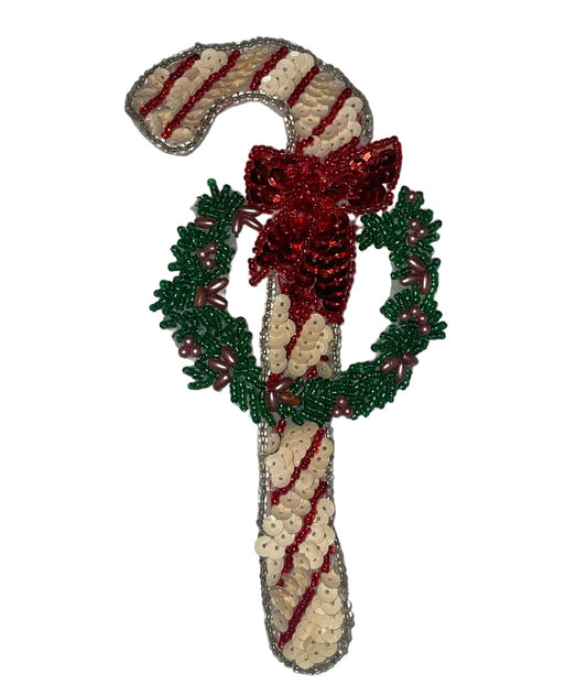 Snowman with Candy Cane Embroidered Iron On, 3.75" x 3.75"