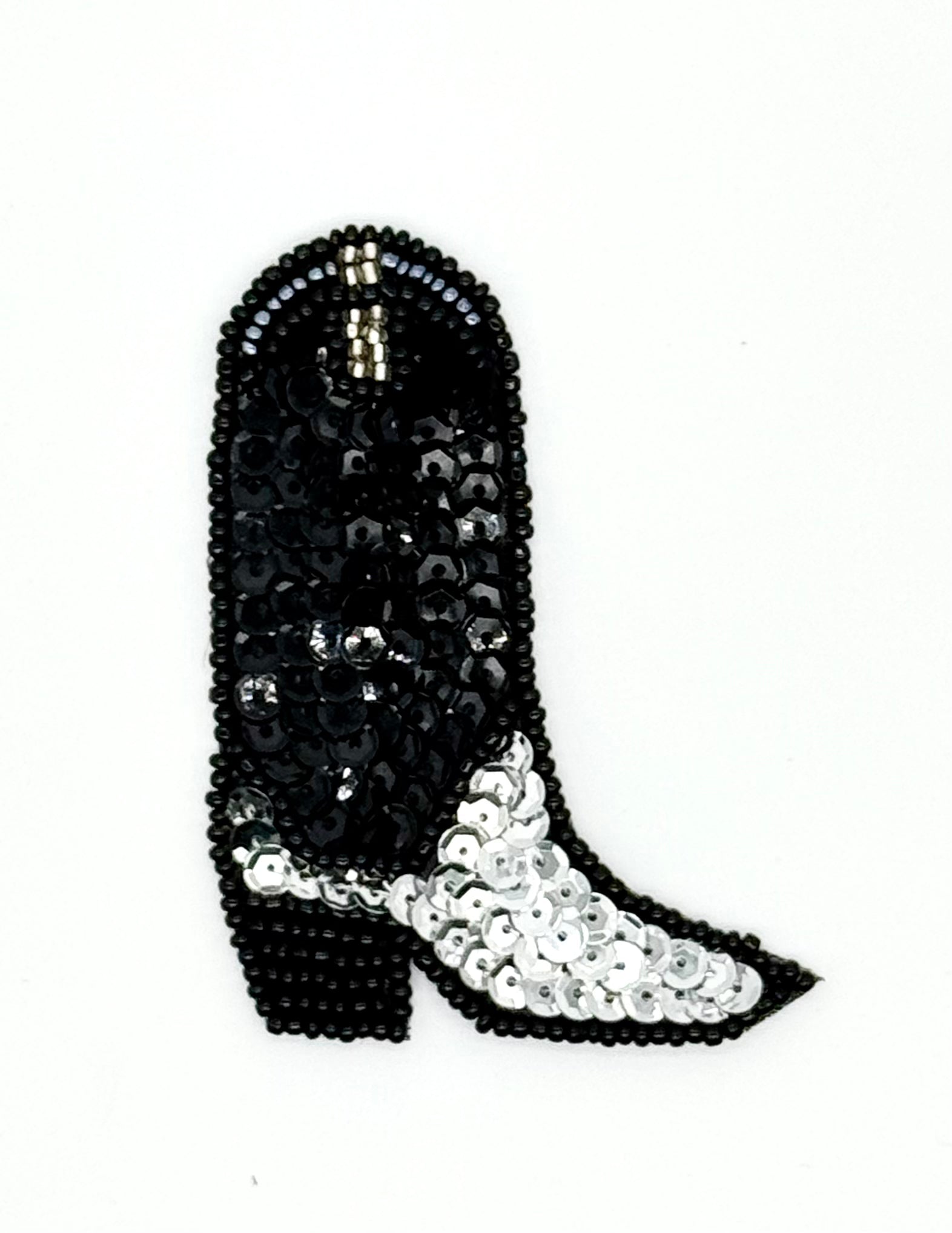 Cowboy Boot with Silver and Black Sequins and Beads 3.25" x 2.5"