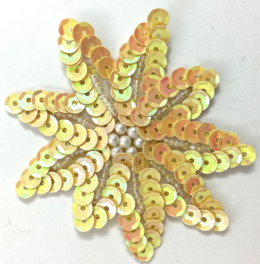 Beautiful Flower Appliqué with Turquoise Sequins and Silver Beads and a Pearl Center 7" x 6"
