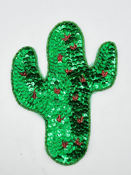 Cactus with Green and Red Sequins and Beads 4.25" x 2.5"