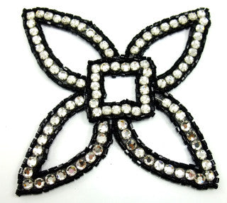Designer Motif Four Point Black Beads and Rhinestones 5.5" x 5.5"