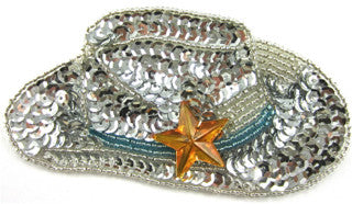 Cowboy Hat with Silver Sequins and Beads, Turquoise Beaded Band and Bronze Acrylic Star 2" x 3.5"