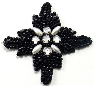 Beaded Black Applique with Rhinestones 2" x 2"