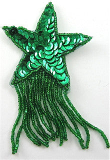 Star Green Sequins and Beads with Fringe, 2.5" x 4"