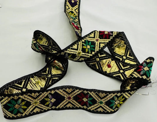 Trim Gold Threads and Multi-Colored Pattern 1" Wide