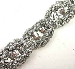 Trim with Silver Sequins and Braided Tinsel 1" Wide
