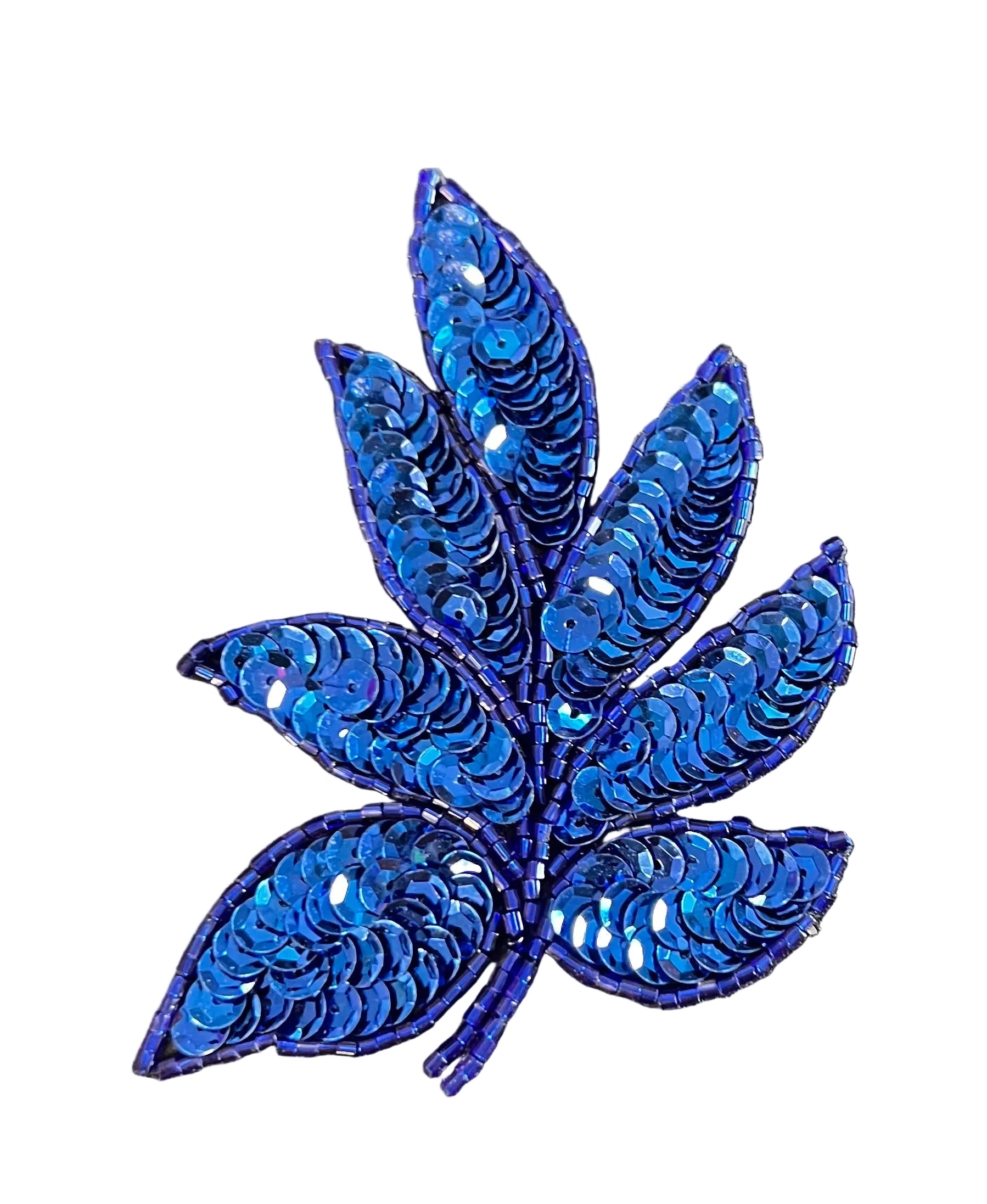 Leaf Single with Royal Blue Sequins and Beads 1.45" x 2"