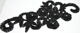 Flower with Black Beads and Rhinestones 10" x 4.5"