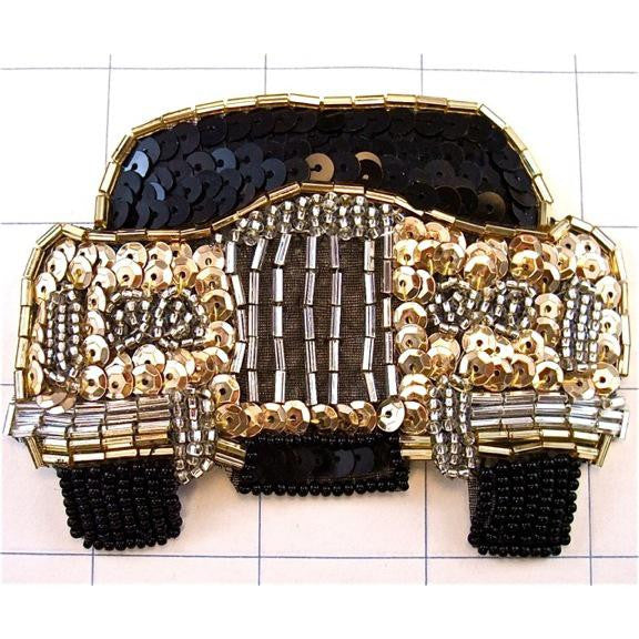Car Rolls Royce Gold and Black Sequins and Beads 4" x 3"