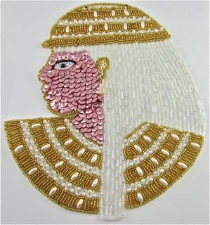 Cleopatra Egyptian Pharaoh, Pink Sequins, Gold and White Beads 6" x 8"