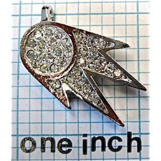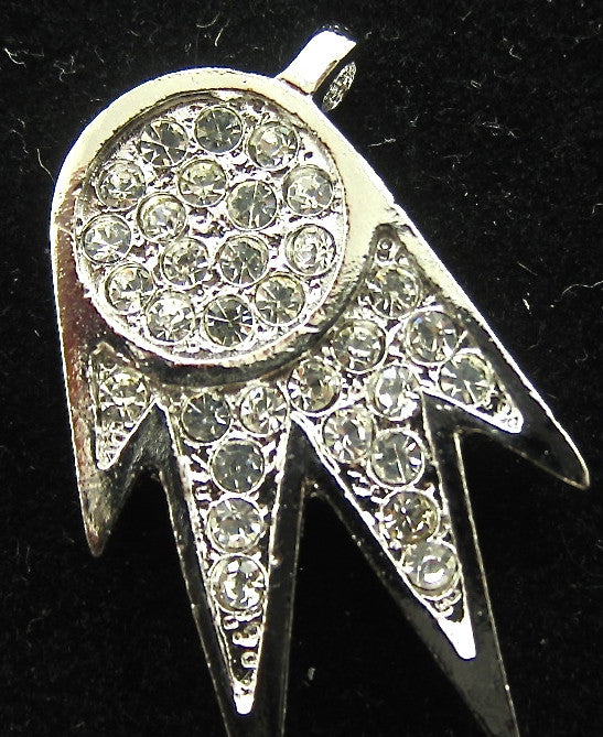 Designer Motif Necklace Pendant with Silver and Rhinestones 1" x .5"