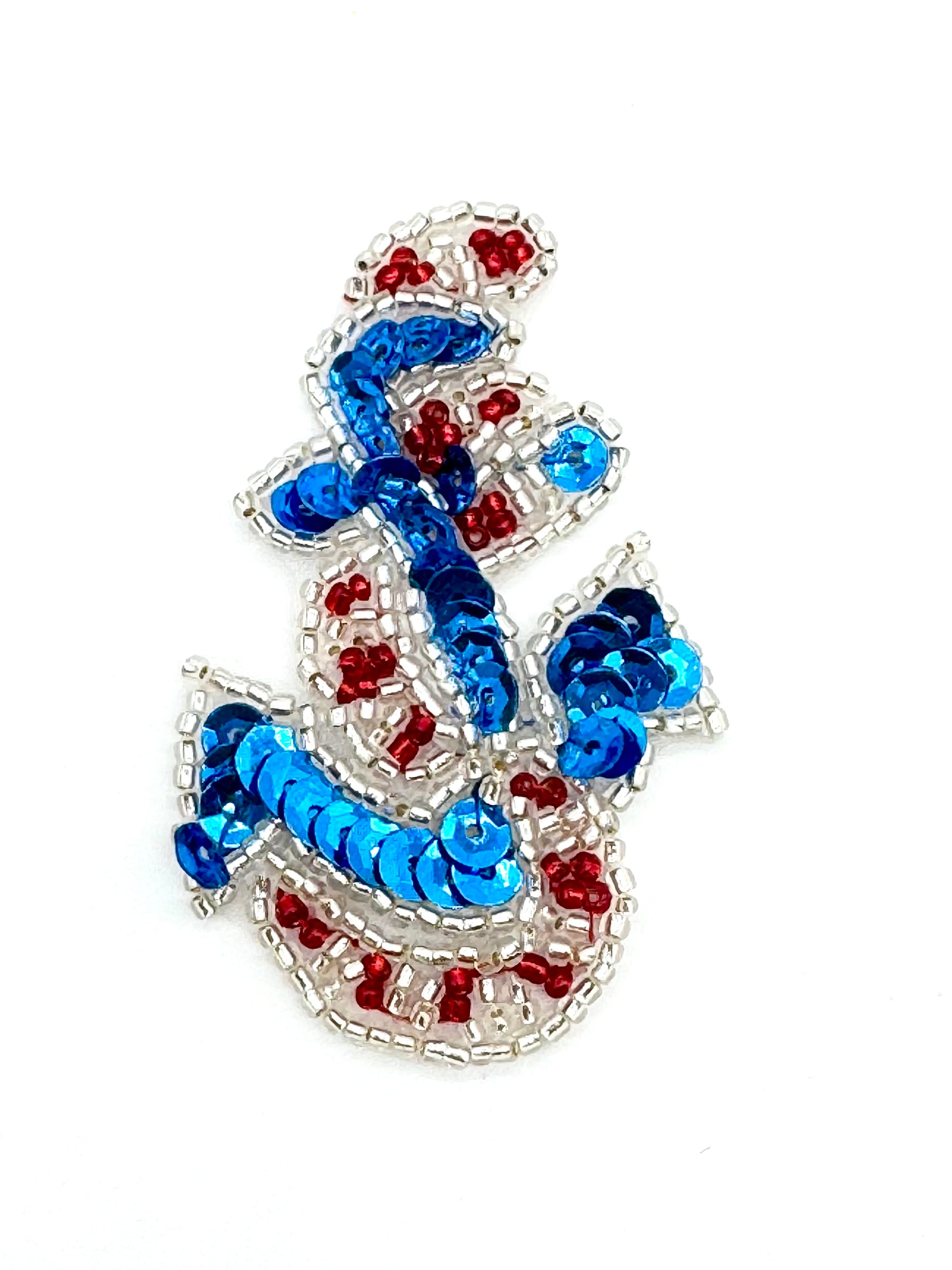 Anchor with Red and Blue Sequins and Silver and Red Beads 2.5" x 1.75"