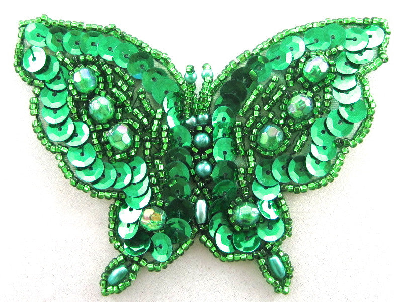 Butterfly with Green Sequins and Beads 3" x 4"