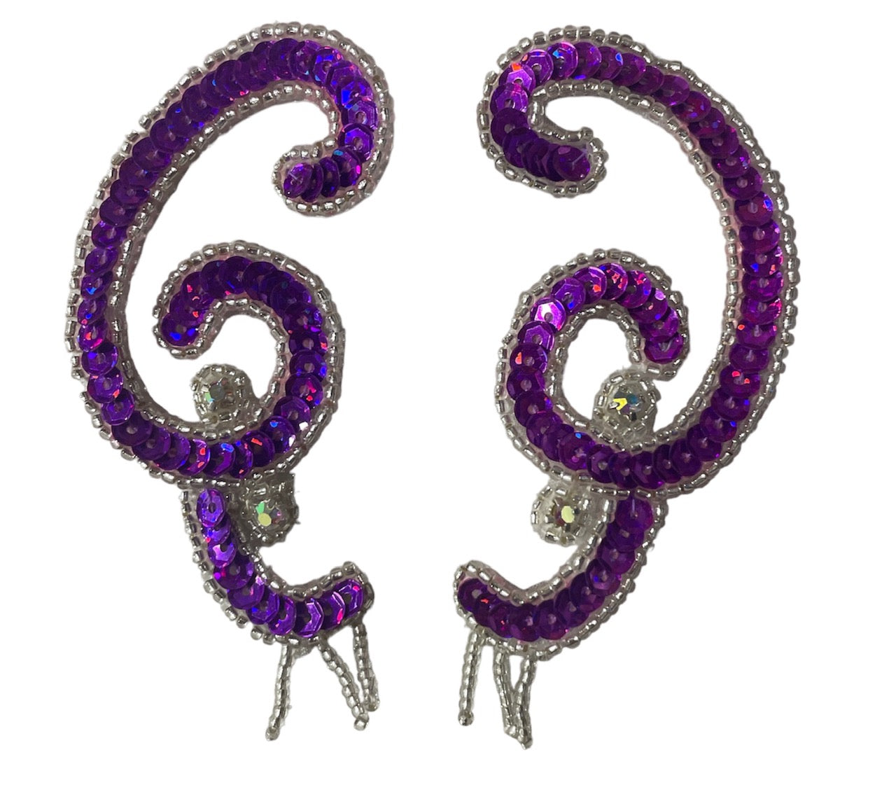 Designer Motif Bright Purple Sequins Silver Beads and AB Rhinestones 4" x 2"