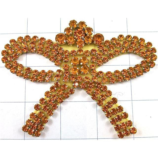 Designer Motif Vintage Bow Shape All Gold High End Rhinestones 3" x 4.5"