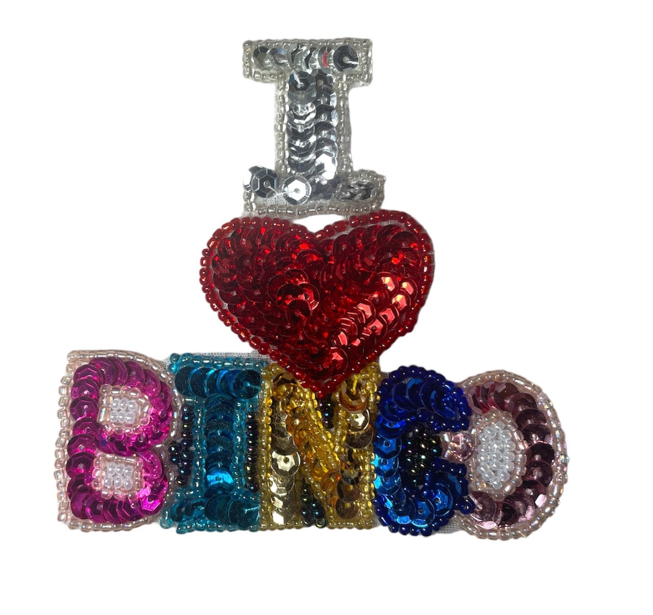 "I Love Bingo" Multicolored Sequins and Beads 3.5" x 3.5"