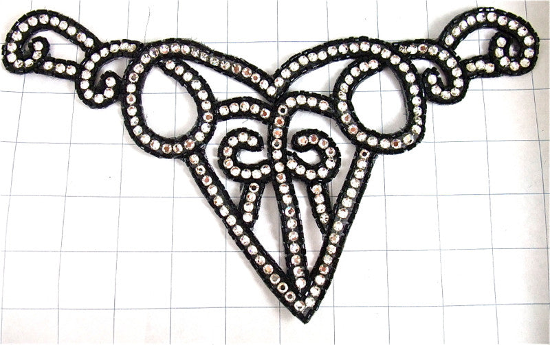 Designer Vintage Motif Neck Line with Black Beads and High Quality Rhinestones 5" x 10.5"
