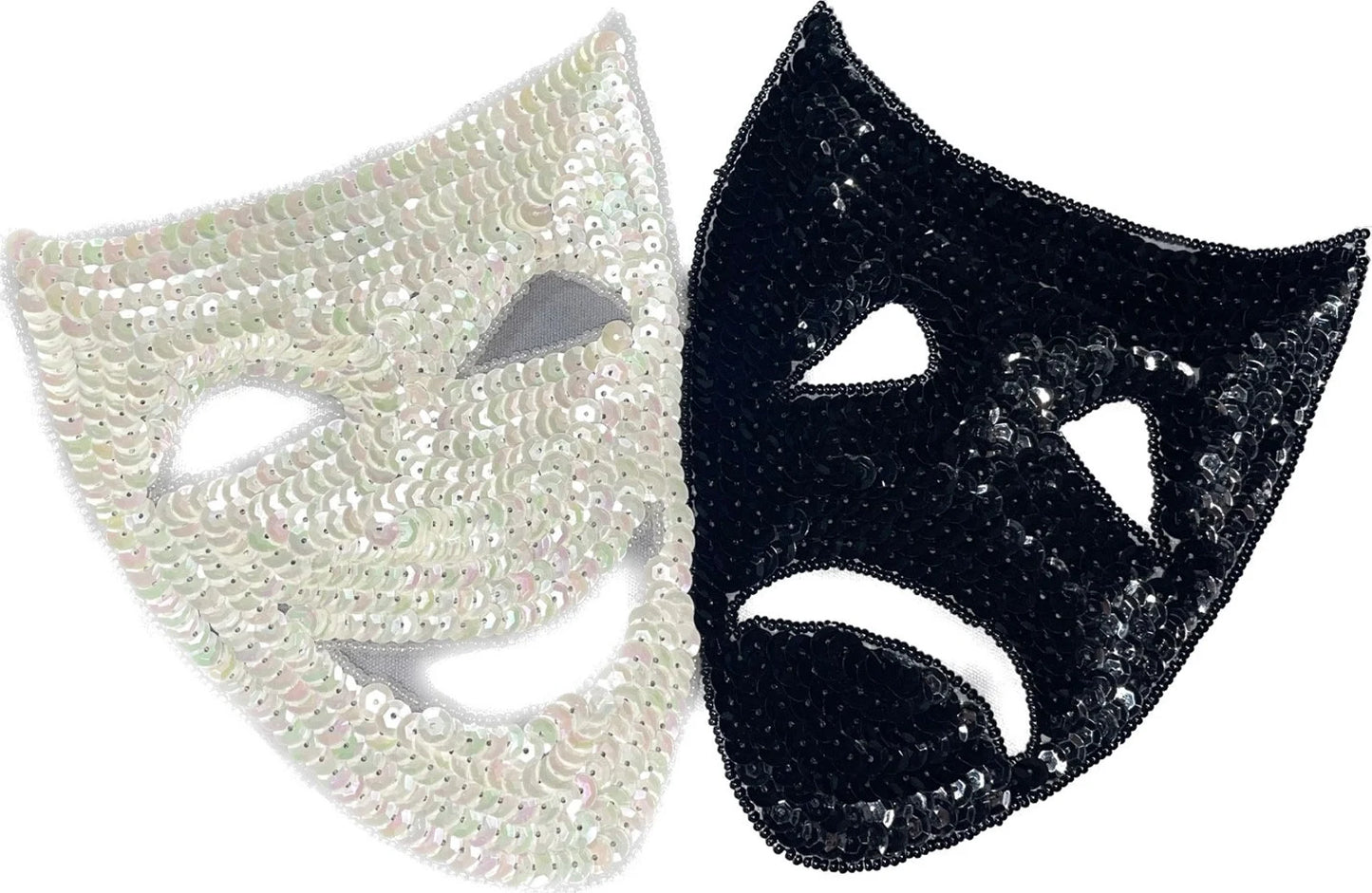 Comedy/Tragedy Mask Black and White Sequins and Beads 10" x 7"