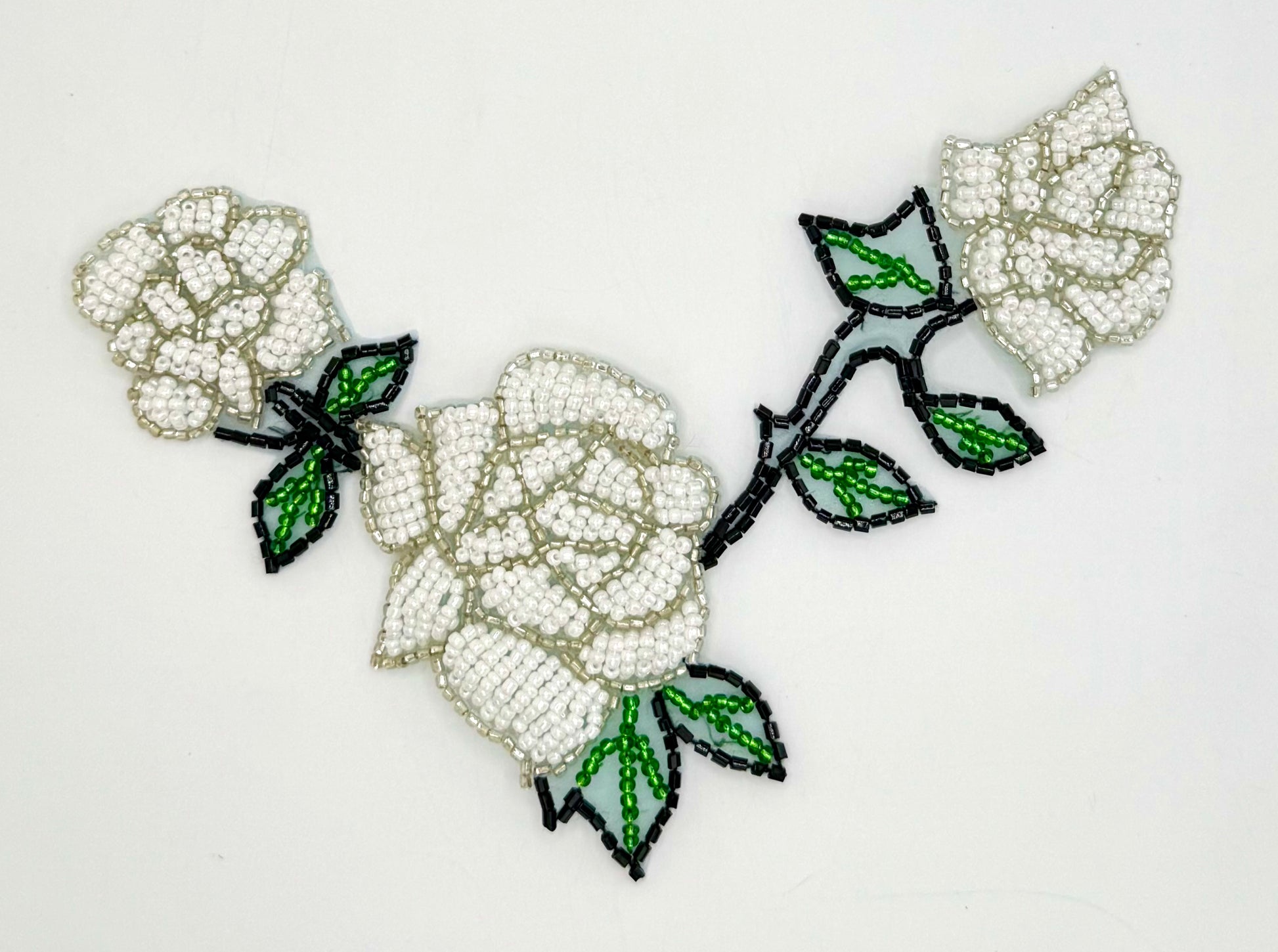 Roses with White, Silver, Black and Green Beads 6" x 4.75"