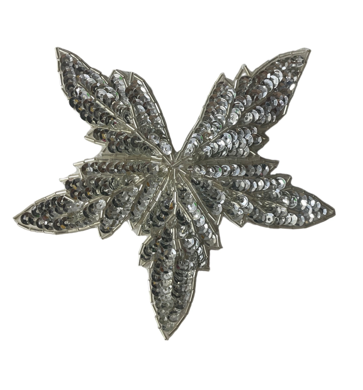 Leaf with Silver Sequins and Beads 5.5"