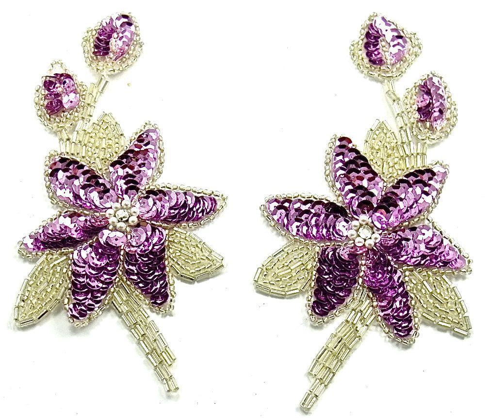 Leaf Pair with Lite Orchid Sequins and Silver Beads 2.5"x 5.5"