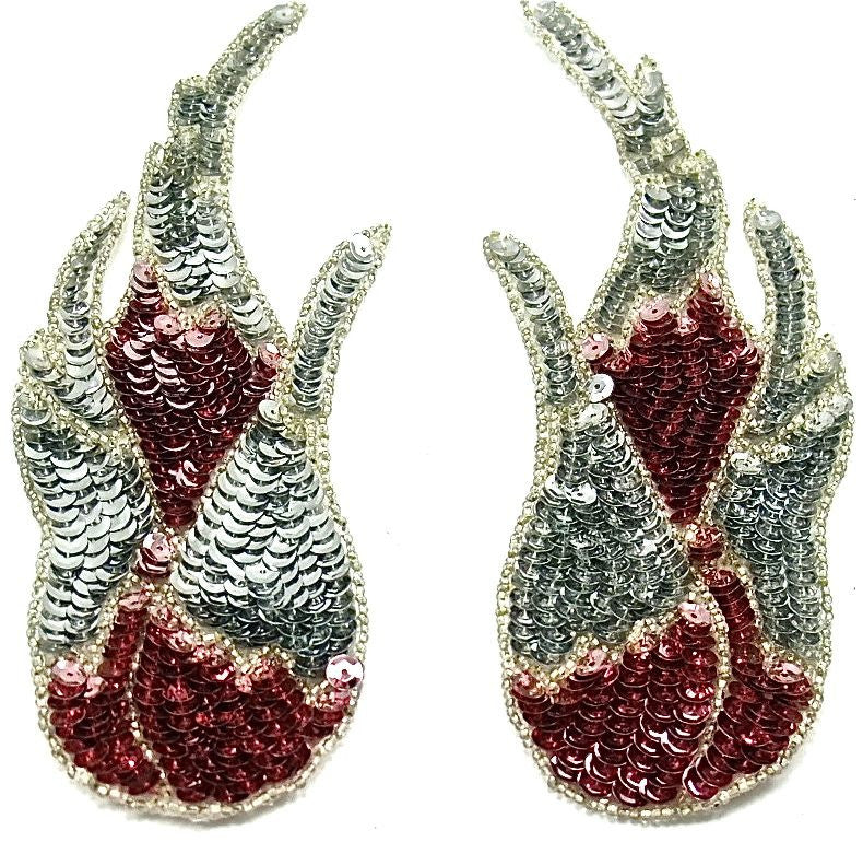 Flame Pair with Pink and Silver Sequins 3" x 8.5"