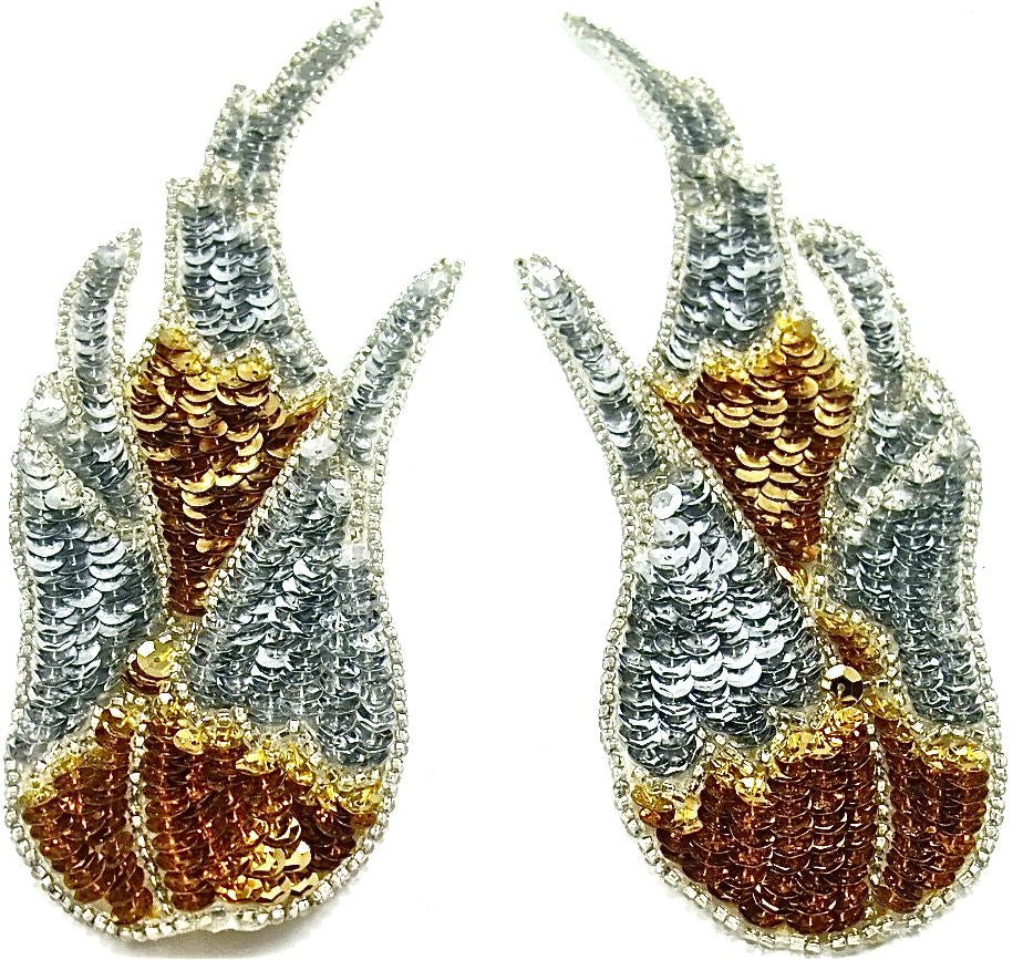 Flame Pair with Gold and Silver Sequins 8.5" x3"