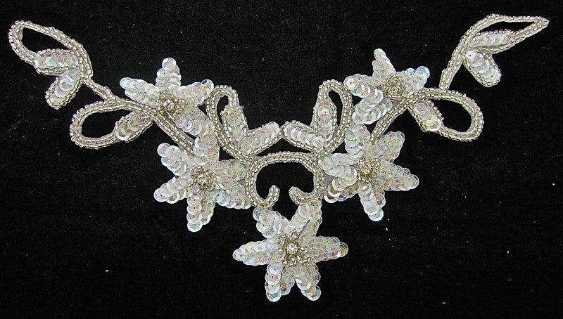 Flower Neck Line with Iridescent Sequins and Beads 10" x 4"