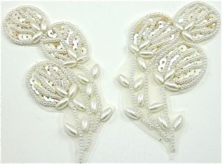 Flower Pair with White Beads and Sequins 1.5" x 3"
