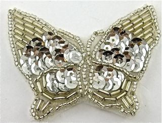 Butterfly with Silver Sequins and Beads 2" x 2"