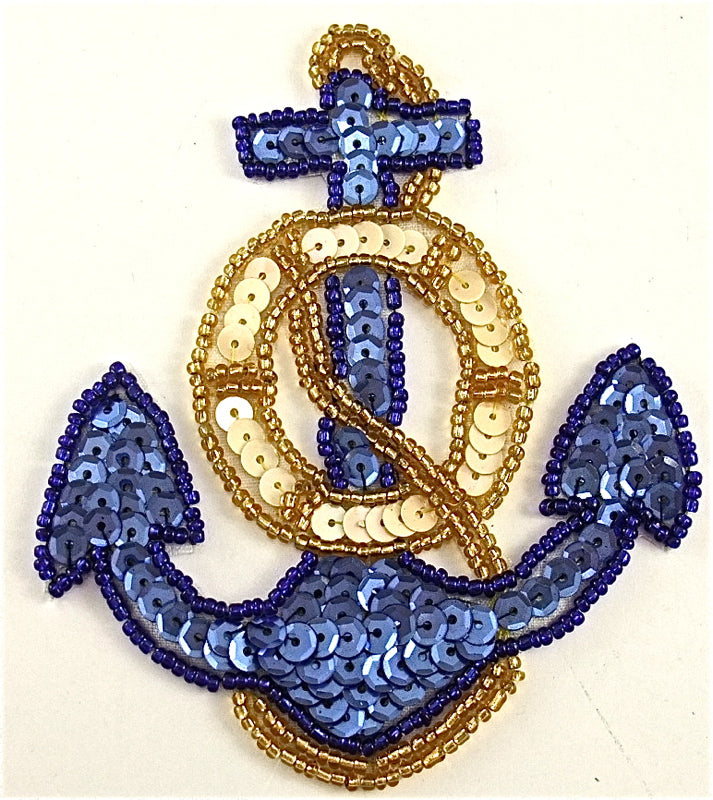 Anchor with Blue Gold and Rope 4.25" x 3.5"