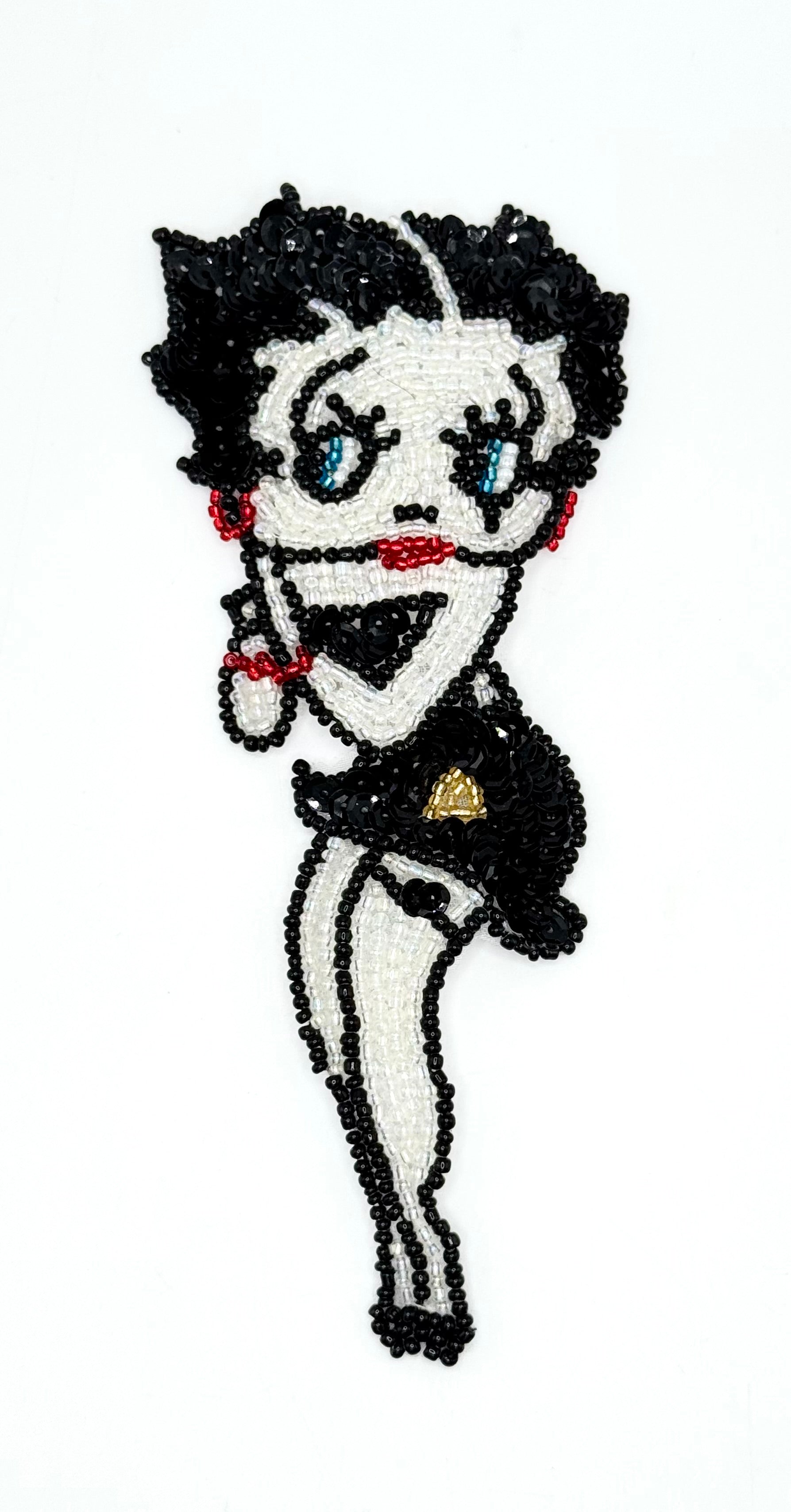 Betty Boop - Beaded Red Lips, Earrings and Bracelet - Black, White, Red, Blue and Gold Glass Beads and Black Sequins 6.5" x 3"