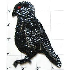 Black Bird with Red Eye - Black and Red Sequins and Red, B lack and Silver Beads 5.5" x 3"