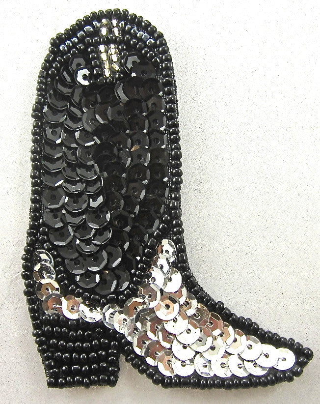Cowboy Boot with Silver and Black Sequins and Beads 3.25" x 2.25"