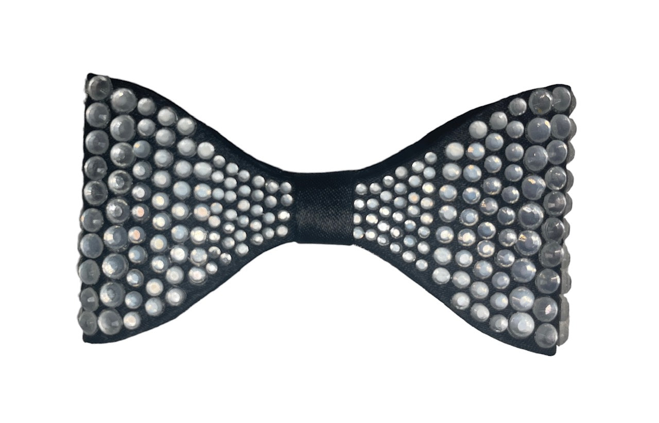 Bow Black Satin with Crystals 1.75" x 3.25" x .5" depth
