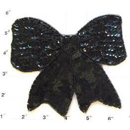 Bow with Black Sequins and Beads 4.75”x 5.50”