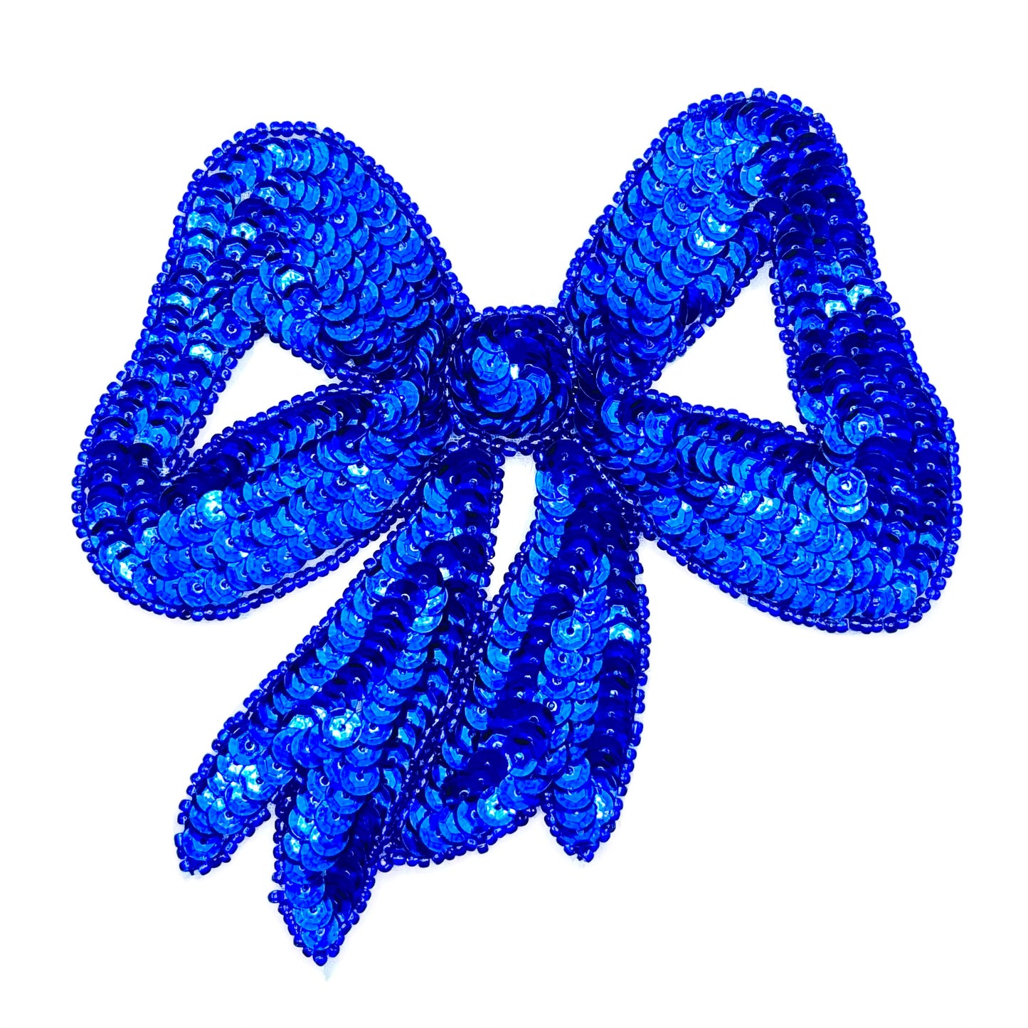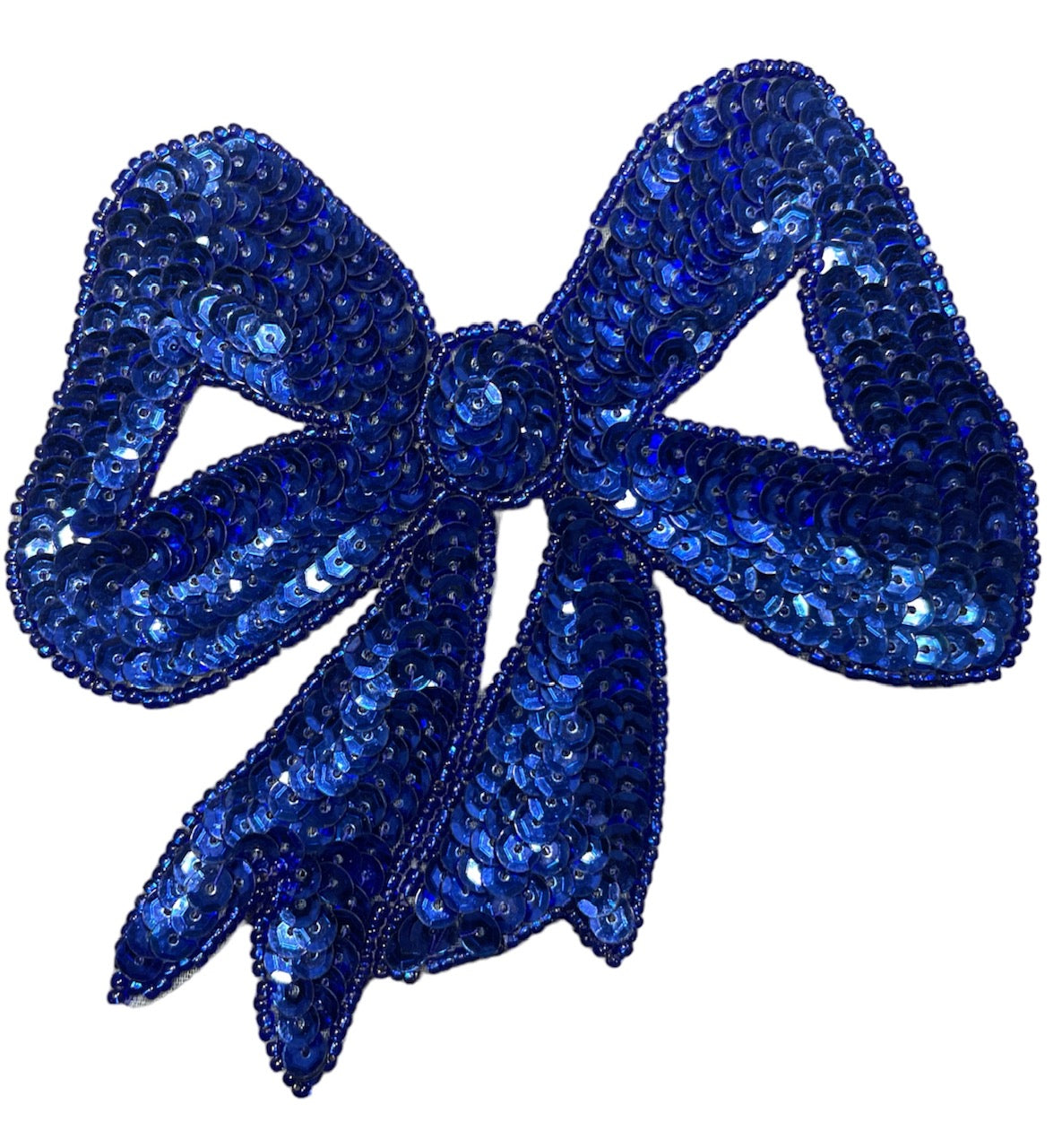 Bow Appliqué Handsewn with Royal Blue Sequins and Beads 5" x 4.5"