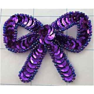 Bow with Purple Sequins and Beads 2" x 2.25"