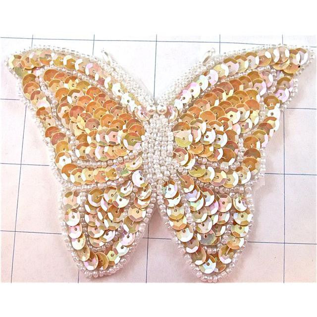 Butterfly Beige and White Sequins and Beads 3" x 3"
