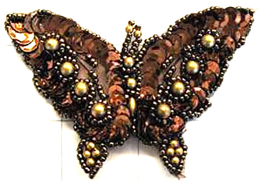 Butterfly Bronze Sequins and Gold Beads 2.5" x 3.5"