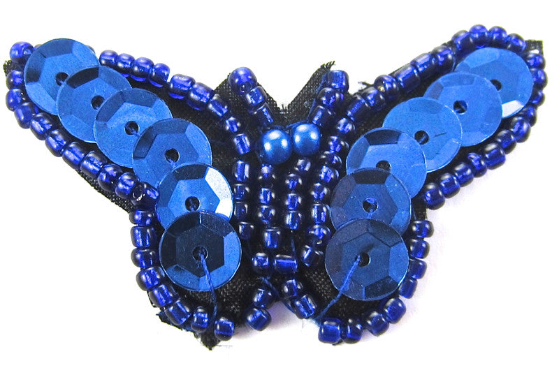 Butterfly Royal Blue Sequins and Beads 1" x 2"