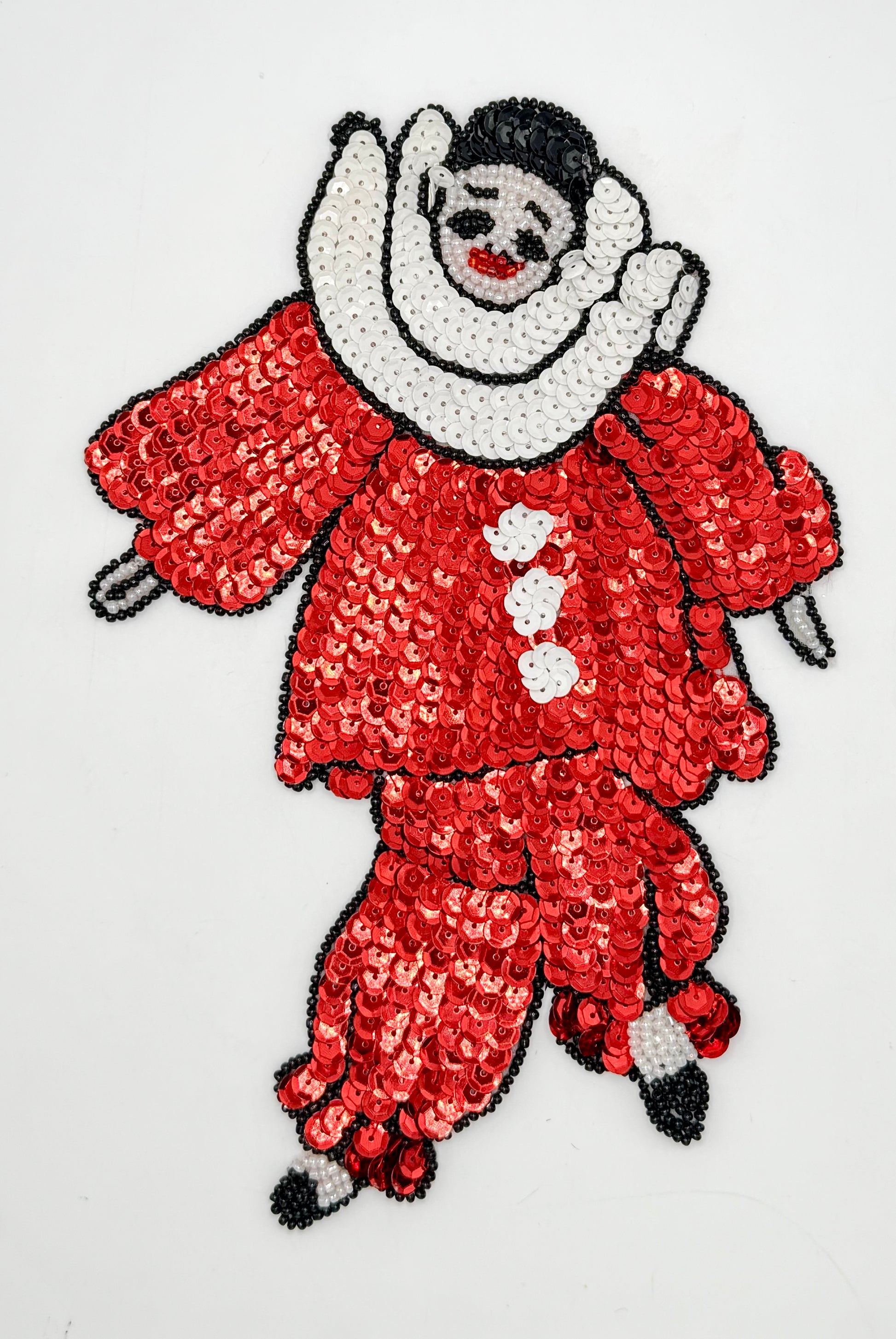 Clown with Red, White and Black Sequins and Beads 8.5" x 5.75”