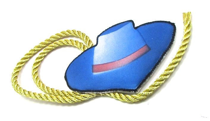 Cowboy Hat - Blue, Red, and Black - Gold Metallic Rope - Iron-On 5" x 3"
