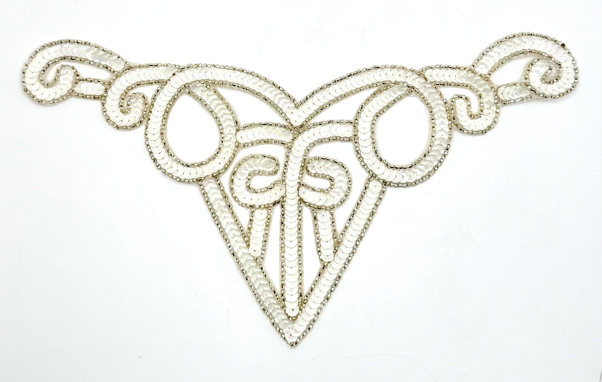 Designer Motif Neckline with White Sequins and Silver Beads 10.5" x 5"