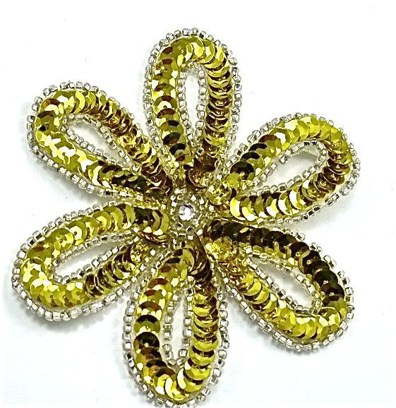 Flower with Yellow Sequins and Silver Beads 3.5" x 3.5"