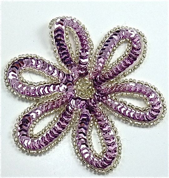 Flower with Orchid Sequins and Rhinestone Center with Silver Beads 3.5" x 3.5"
